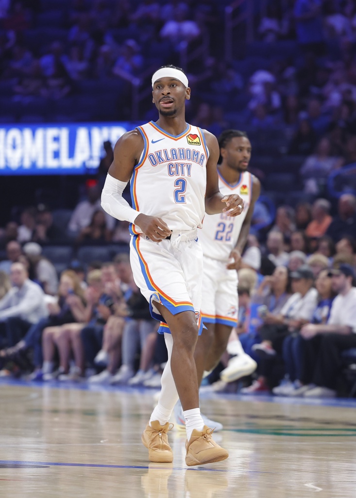 揭幕战中对阵火箭亚历山大砍下35分5篮板5助攻2抢断2盖帽的数据,助队双加时险胜。