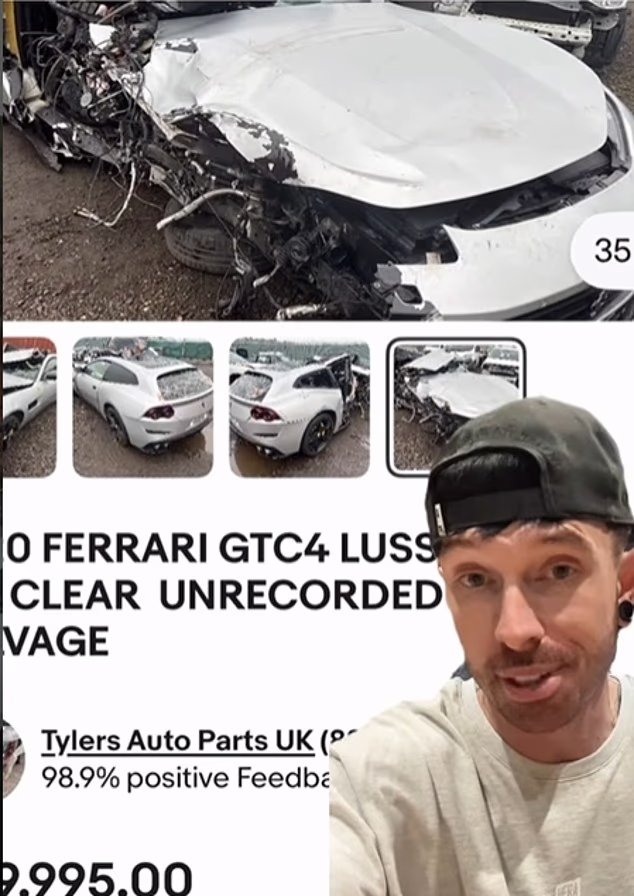 去年车祸现场照片显示,这台灰色法拉利的右侧受损严重;10个月后,网站上展示的残骸状态与当时一致。安东尼奥或许是希望通过出售残骸中可回收利用的昂贵零部件,收回部分购车成本。